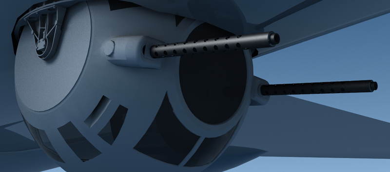 An early render of the ball turret. I especially got carried away in the cradle assembly that rotates the turret. |