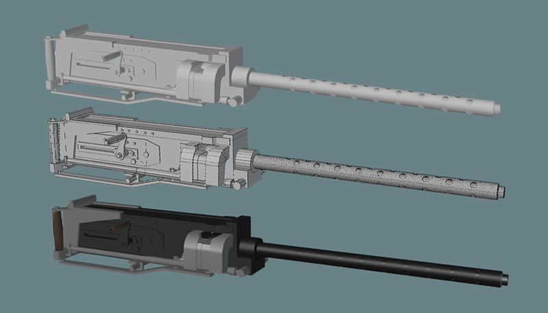 Quick and dirty .50 caliber Brownings. I slapped these together in about 4 hours figuring they didn't have to be all that detailed since for the most part they'ed all be behind plexi in the dark interior. |