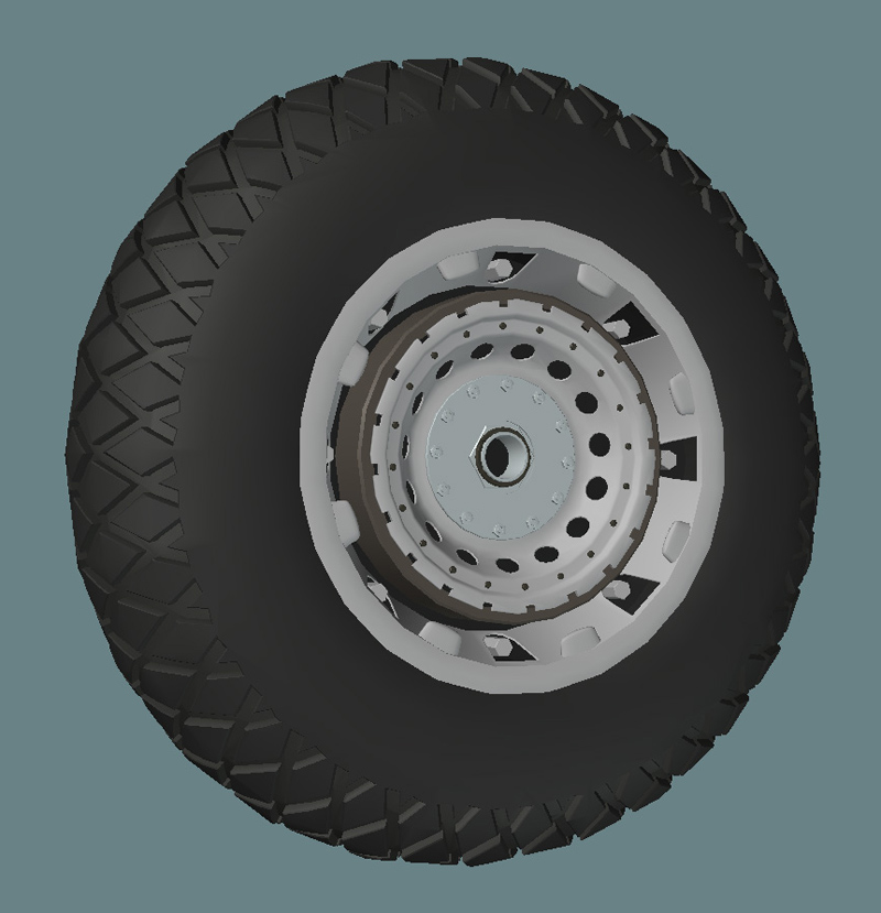 A main wheel. Yes, I know that when the gear is retracted you only see a section of the rubber part below the nacelle. But I figured that at some future point in time I might lower the gear for a different painting. The criss-cross tire tread isn't perfect, it should shallow out as it wraps around to the side walls. But that was going to be difficult to model, and this would get the job done for my purposes. |
