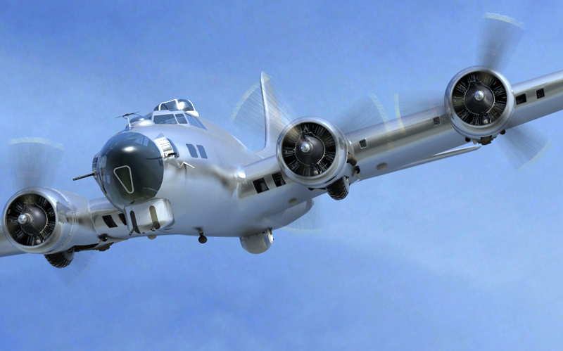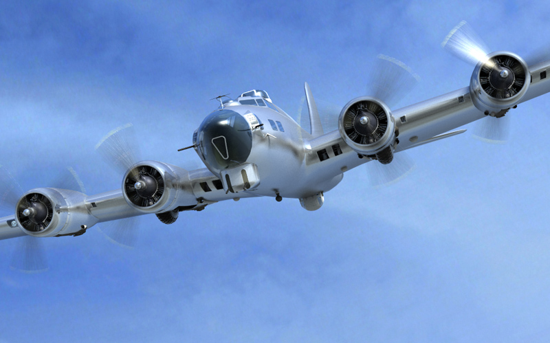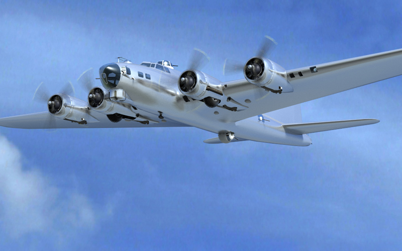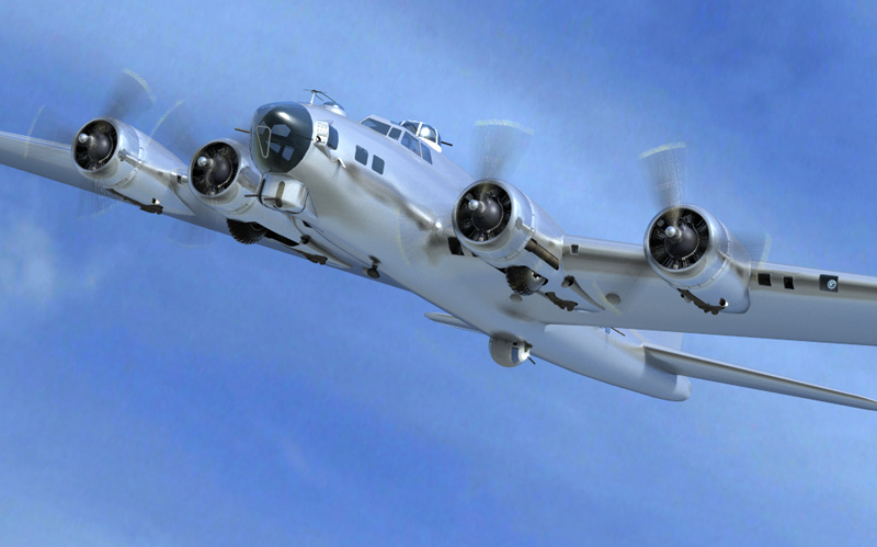 I have a vague idea of a low angle that shows the nose art, but beyond that nothing has been worked out yet. Back in March I set up a bunch of low-res B-17 models in a combat box formation with "Winged Warrior" in a position most likely to get other B-17s in the background, then set up some camera angles to see if anything really popped out. |