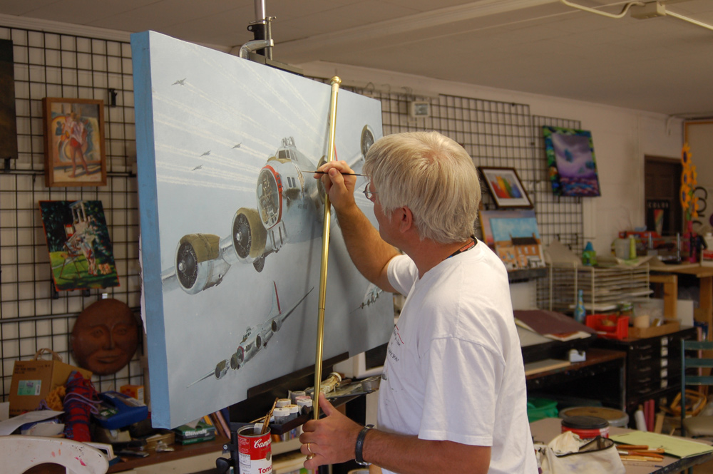 Yesterday, Steven Murphy (Steven is a former student of Col. Newman who instigated this painting back in December 2009) drove the painting to Wilmington, NC to deliver the painting to Robert Newman. He was quite thrilled with it and gave both of us a big hug. After deciding which wall it was going to hang on and that the current occupant, a picture of a B-52 was going to have to go, he took us both out to lunch at a nice restaurant looking out over the ocean. So, it's really finished now, unless I want to drive 4 hours to Wilmington to fix something... |