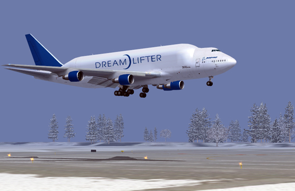 This release includes repaints for all 4 currently existing Dreamlifters. They're all basically the same, except for some different nose windows, at least one different registration font and the amount of dirt on the swinging tail. We are not releasing a paintkit for this one. The stunts required to fit the fuselage expansion onto the original texture led us to do some things that would not be considered "best practices" in texturing a model. The bulged fuselage is half the size on the texture as the rest of the fuselage which would make doing any repaint that spanned across the original fuselage and the new parts a nightmare to line up. This release is an FS9 model, an FSX version should be along shortly, just as soon as we can find the FSX install discs. P3D? We have no idea what you're talking about. Seriously, what is that, a 3-D game about urination? |